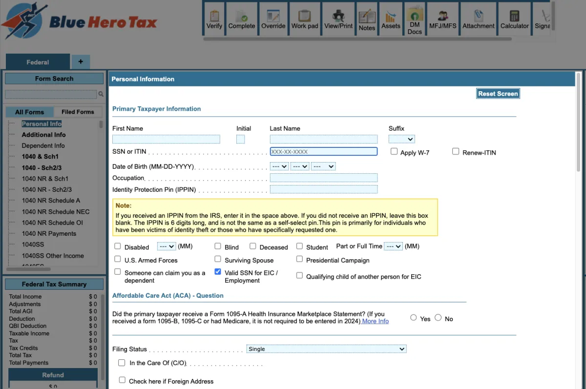 Discover the full suite of powerful features in Blue Hero Tax, designed to streamline your tax preparation process, elevate your game, and help you provide expert service to your clients.